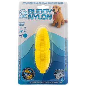 Para os cães com perfil de mastigação moderada, temos o Boneco Buddy Flex e o Graveto Buddy Flex. Agora, para cães que amam roer e destruir tudo pela casa… indicamos o Milho Buddy Nylon e o Graveto Buddy Nylon.